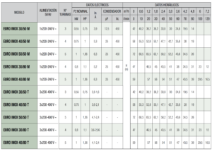 Protecciones incorporadas: formación de hielo, marcha en seco, anticycling, amperimétrica, sobre temperatura, tensión de alimentación anómala, etc.