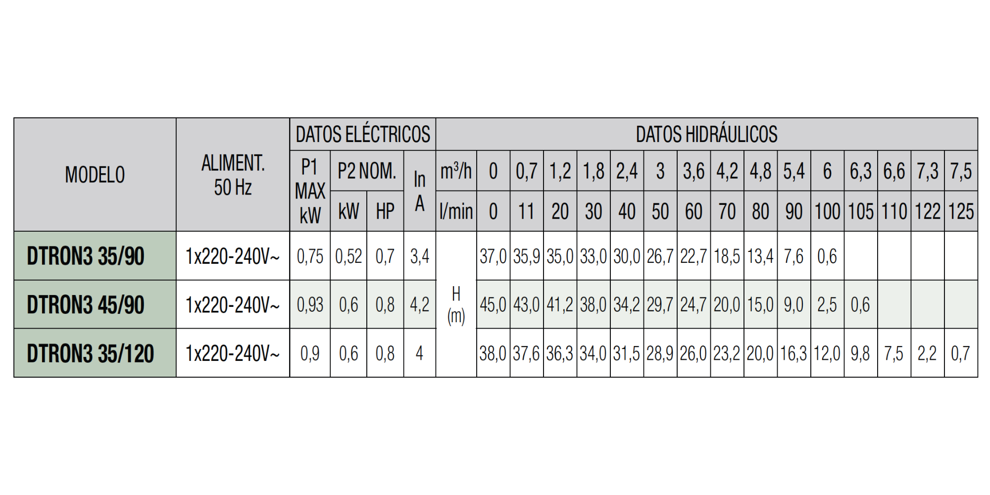 Bomba Sumergible DTRON3 35/90 0,52 Kw 0,7 HP.